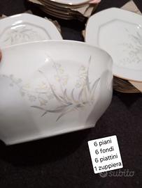 6 PIATTI PARI 6 PIATTI FONDI 6 PIATTINI 1 ZUPPIERA 6 TAZZINE CON PIATTINO 1 ZUCCHERIERA