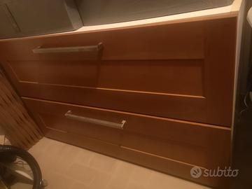 Vendo cucina smontata come da foto, nelle immagini 5 e 6 potete vedere come si presentava quando montata, rispetto a quest'ultime immagini, NON sono presenti tra i pezzi venduti : i due top, gli elettrodomestici, piano cottura, lavello e mensole.