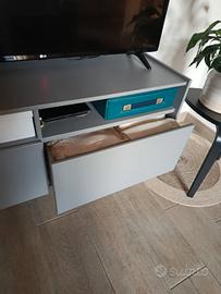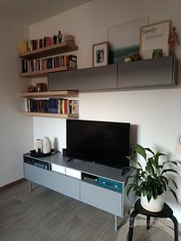 Vendo composizione mobile TV +pensile RAMSÄTRA e mensole LACK effetto rovere mordente bianco. Mobile TV, dimensioni: L 175,P 42,H 62 Pensile: L 175,P 25,H 27 Mensole: L 110,P 25. No spedizione. Per informazioni, contattatemi.