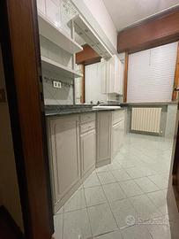 Composizione bagno composta da base con cambio di profondità (da 35 a 50 cm), ante classiche in laccatura bianco opaco, piano in marmo a sbalzo, completo di mensole, specchio con faretti e pensile contenitivo. Lavello in ceramica inclusa (presenta una piccola sbeccatura). L'articolo è un usato in ottimo stato che potrebbe presentare piccoli segni dovuti al tempo e all'uso. Visibile presso il nostro showroom, da smontato. MISURE indicative:
