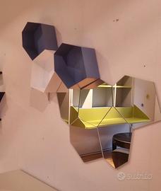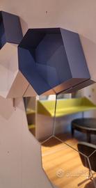 Calligaris Moss è un complemento originale e versatile composto da elementi specchio ed elementi contenitore in metallo laccato sky blue opaco di forma esagonale che completano la composizione.