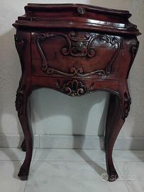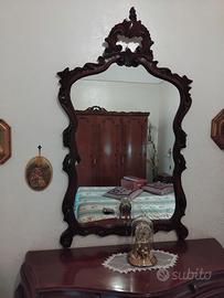 Vendo anche singolarmente:1 como' in legno color noce cm 115x85x45 2 comodini in legno color noce cm 45x70x25 1 specchio con cornice in legno cm h 135x 75 L