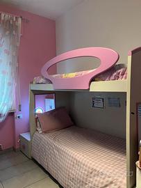 composizione di cameretta con 2 letti piu un terzo letto a scomparsa,con scaletta laterale compreso 3 materassi seminuovi.