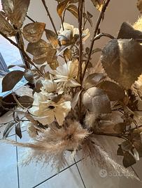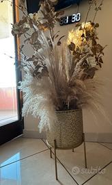 Composizione di fiori, foglie e pampas in vaso
