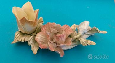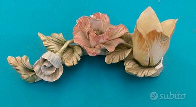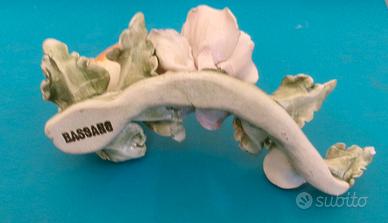 Ceramica di Bassano, graziosa composizione floreale, finemente decorata a mano, misure: 15 cm. x 8 cm. x 5,5 cm.