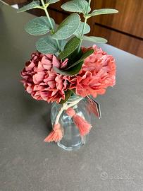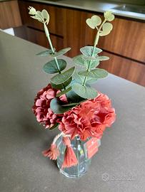 • Fiori artificiali nei toni rosa antico con fogliame di eucalipto