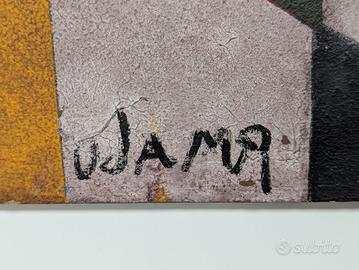 Opera a olio su cartone raffigurante una composizione geometrica di chiaro riferimento alle avanguardie del primo Novecento, con particolare richiamo al movimento suprematista russo.