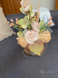 Composizione Floreale in plastica con vaso in cristallo idea regalo bello anche come arredo