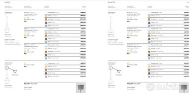 Composizione lampadario Romeo e Giulietta, prezzo originario €966,00, sconto 70%, prezzo finale €290,00 Prezzo relativo alla composizione in foto. Lampade a sospensione con diffusore in vetro soffiato a bocca e lavorato a mano con finitura a rilievo “balloton” in due forme e in diversi colori. Struttura in metallo verniciato grigio e cavi in tessuto grigio. Romeo e Giulietta è un prodotto personalizzabile, per colori e finiture, pensato anche per un uso modulare. Pezzi della composizione: – Romeo diametro 25, altezza max 153 con cavo regolabile, vetro argentato – Romeo diametro 25, altezza max 153 con cavo regolabile, vetro fumé – Giulietta diametro 32, altezza max 150 con cavo regolabile, vetro bronzo – rosone per composizione con tre ganci Nuovo, di expo. Piccolo segno di usura su uno dei cavi, dovuto a disattenzione durante il montaggio. Prodotto attualmente in gamma e quindi possibilità di completamenti/aggiunte.