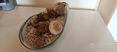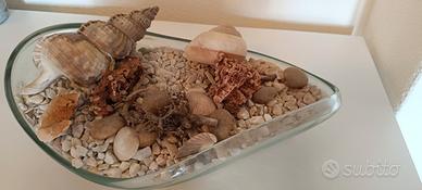 Vendo elegante composizione decorativa a tema mare, già pronta da esporre, completa di vaso in vetro.