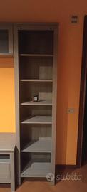 Composizione modulare di mobili che include: Una vetrina con ante in vetro e cassetti inferiori. Un mobile TV centrale con tre scomparti aperti e tre cassetti. Una libreria. Un ponte superiore con scomparti che collega i due mobili laterali sopra la TV. Color tortora, di difficile reperibilità. In ottime condizioni, vendo per inutilizzo. Dimensioni Totali (Stimate) Larghezza totale: circa 280–300 cm Altezza: 197 cm Profondità: circa 47 cm per la base TV e 34–37 cm per i pensili e la libreria. Solo ritiro sul posto.