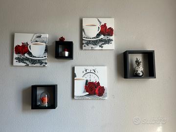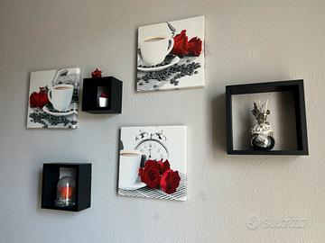 Tre quadri 30x30 piu tre cubi neri portaoggetti