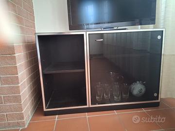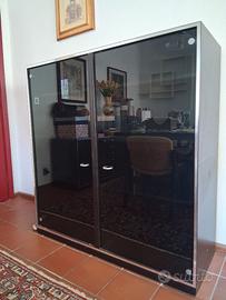 Composizione soggiorno anni 70 legno nero, acciaio e vetro così composto: