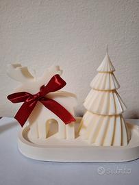 composizione candele in cera di soia albero disponibile bianco, rosso o verde. piattino in gesso riutilizzabile. bellissima decorazione per natale