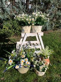 Composizioni floreali artificiali per ambienti con poca luce e senza bisogno di manutenzione. Con vasi diversi, interessanti complementi d’arredo. €20 per il singolo articolo. €10 al pezzo per il lotto.