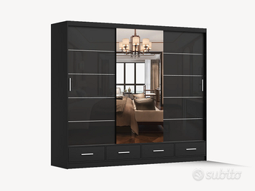 L’armadio Barcellona è di generosa capienza e di design funzionale. Le sue dimensioni importanti, 250 cm in larghezza, 218 in altezza e 61 in profondità, lo rendono perfetto per organizzare una grande quantità di vestiti ed accessori. Le ante scorrevoli, con maniglie integrate discrete, ottimizzano lo spazio e facilitano l’apertura, mentre i colori lucidi dei suoi frontali conferiscono un tocco avveniristico all’ambiente. La struttura interna è ben organizzata, con ripiani regolabili in altezza e ben 4 aste appendiabiti che permettono di adattare lo spazio alle proprie esigenze. La possibilità di aggiungere cassettiere o ulteriori accessori offre un’ulteriore flessibilità. Realizzato con materiali resistenti e comodi da pulire, l’armadio Barcellona è un investimento duraturo nel tempo. Che tu abbia una camera da letto spaziosa o un piccolo appartamento, l’armadio Barcellona è la soluzione ideale per mantenere tutto in ordine con stile. Il peso di questo armadio è di ben 277 kg! EXCELLENT LINE – GARANZIA DI 2 ANNI COME DA NORMATIVA EUROPEA STRUTTURE INTERNE, SISTEMI DI ASSEMBLAGGIO, APPENDIABITI E PARTI ESTERNE MOLTO RESISTENTI PRODOTTO ROBUSTISSIMO E DI ALTA QUALITÀ! Misure: lunghezza 250 cm – altezza 218 cm – profondità 61 cm Materiali robusti e di qualità: pannelli in laminato, in MDF bordi in ABS Pulizia: utilizzare acqua tiepida e detergenti neutri, usando panni delicati antigraffio. Asciugare tutto subito appena si è finito di pulire. Desideri ulteriori informazioni? Contattaci al numero (anche WhatsApp), siamo a tua disposizione!