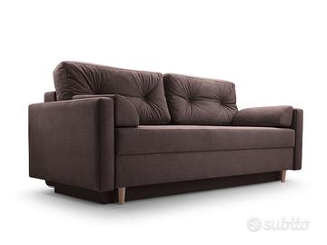 Il divano lineare modello Cornovaglia è un elegante elemento d’arredo che si adatta a qualsiasi ambiente. I braccioli e i cuscini morbidi aumentano il comfort di utilizzo. Il divano ha la funzione letto e le sue dimensioni sono 153x189cm ; l’apertura è semplice e veloce. Un ulteriore vantaggio è il box contenitore. Sottolineiamo che il rivestimento della funzione letto che fuoriesce può essere di colore diverso da quello evidenziato in foto e comunque non è in tinta ed è differente dalla combinazione di colore del divano che si sceglie. Misure: lunghezza 213 cm – altezza 83 cm – profondità 98 cm – dimensione letto 153×189 cm Perché il divano Cornovaglia è così speciale? Materiali robusti e di qualità: anima in legno massello e imbottitura in schiuma di poliuretano ad alta resilienza dalla densità di 40 kg/m3. Cinghie di sostegno in ferro per sostenere il peso e le sollecitazioni con maggiore resistenza Funzione letto: si trasforma facilmente in un letto aggiuntivo per i tuoi ospiti Box contenitore: dotato di un ampio spazio contenitore integrato, ideale per riporre coperte, cuscini, biancheria da letto o altri oggetti Posti: comodo per 2/3 persone Design: presenta un design classico ed importante, piedi in legno Versatilità: divano lineare con box contenitore e funzione letto, tutto in uno Rivestimento: 6 eleganti colori di tessuto felpato dalla lucentezza delicata, piacevole e morbido al tatto. Tessuto per tappezzeria durevole, anti-pilling durante l’uso, con elevata resistenza alla luce. Questo divano non è sfoderabile. Divano su misura: a garanzia della qualità dei nostri prodotti e dell’attenzione dedicata ai nostri clienti, il divano che sceglierai sarà un pezzo unico, creato esclusivamente per te, un prodotto di qualità accessibile e versatile! Garanzia: 2 ANNI Il peso del divano letto Cornovaglia è di 113 Kg, a misura della sua qualità e della robustezza dei materiali di cui è costituito!