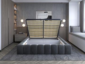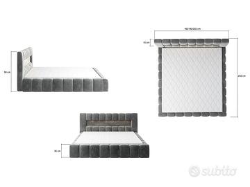 Tra i nuovi letti con box contenitore, quello dal maggior impatto scenico e visivo è probabilmente il modello Santander. Questo letto infatti ha un design ricercato e con rifiniture in senso verticale presenti sulla testata e lungo tutto il percorso perimetrale, sia nelle parti laterali che nella pediera. La caratteristica principale del letto Santander è la testiera un intercapedine che si sviluppa in senso orizzontale dove, nella parte superiore, sono posizionate delle eleganti e raffinate luci d’atmosfera. Per questo motivo il letto Santander è un prodotto di livello superiore. Il fascione perimetrale su lati, pediera e testiera di dimensioni importanti rispetto a tanti letti con box contenitore, rende il modello Santander particolarmente indicato per stanze e camere di ampie dimensioni. La caratteristica principale del nostro letto con box contenitore Santander, che lo rende un prodotto di Altro Pregio e di livello superiore, è la rete a doghe, robustissima e di ottima fattura, con ben 24 doghe per piazza, per un totale di 48 elementi. Avendo le doghe separate, questa rete permette di godere di un letto a due piazze autonome, dove i movimenti di chi dorme da un lato non disturbano il riposo della persona che dorme sull’altro lato. La rete a doghe ha inoltre un profilo in metallo ed è molto pratica e funzionale. Il sistema di sollevamento della rete è a pistoni a gas. I nostri letti con box hanno il rivestimento posteriore in tinta con il resto della struttura e perciò sono idonei per essere collocati con il retro in vista o anche al centro della stanza. Raffinate luci d’atmosfera multicolore a ridotto consumo, con telecomando. Il peso complessivo del letto Santander è di ben 110 kg nella versione di rete 160×200 cm e di 125 kg nella versione di rete 180×200 cm. Misure letto 160×200 cm: larghezza 182 cm – altezza 90 cm – profondità 232 cm Misure letto 180×200 cm: larghezza 202 cm – altezza 90 cm – profondità 232 cm