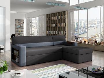 Divano letto matrimoniale angolare con penisola e box in 6 combinazioni di colore soft, primo prezzo!