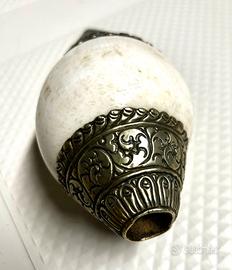 Si tratta di un Shankha (conchiglia rituale) decorato, tipico della tradizione Tibetano-Buddista o Induista.