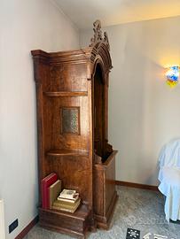 Confessionale antico, colore marrone in legno.