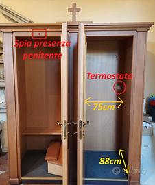 vendo confessionale in legno come da foto. ottime condizioni Dispone di luci con sensori di presenza, termoregolazione della temperatura, prese elettriche interne nella zona del confessore. possibile confessione a viso aperto o dietro grata, presenti due appendici per gli abiti. spostamento a carico del compratore. Arredo da smontare. arredamento religioso, chiesa, arte sacra visionabile zona Mogliano Veneto