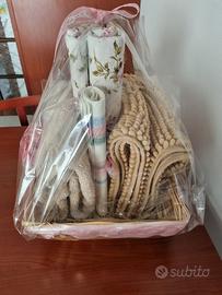 Vendo cesto comprendente Copritutto 250x250 - Tappeto bagno 50x80 - 2 strofinacci 50x70 - set asciugamani viso 50x100 ospiti 40x60 Ritiro a cura del cliente Milano zona Inganni