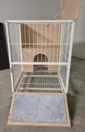 Gabbia per conigli o cavie da interno, che può essere utilizzata anche semplicemente come mobile contenitore. Dotata di rotelle, struttura robusta in truciolato ed acciaio. Misure: 79x51x75h cm. Prezzo non trattabile.