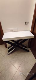 Consolle allungabile Diago bianco frassino telaio antracite. Versatile e robusta si trasforma in un tavolo da pranzo lungo 196 cm grazie alle tre allunghe in dotazione. Realizzata con pannelli in nobilitato, gambe in ferro. Sistema di allunghe con guide telescopiche in alluminio e sostegno centrale che rende robusta tutta la struttura. Prodotto da itamboby made in Italy. Consolle chiusa:L.90, P.40, H.77. Prezzo di listino nuovo €1923 potete verificare sul sito.