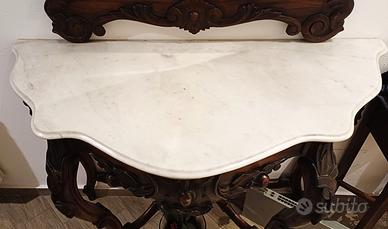 Console antica, fine 800 Luigi Filippo , con specchio e piano in marmo
