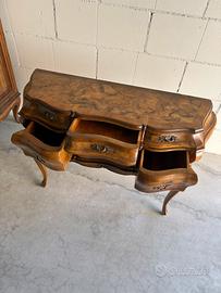 Console antica intarsiata con cassetti