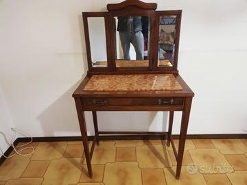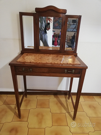 Console con specchio e cassetto porta oggetti in legno e piana in marmo centrale. Un elemento da arredamento molto antico e particolare.