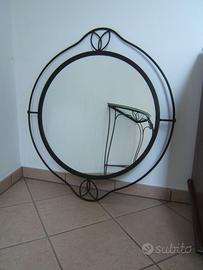 Vendo elegante console con ripiano in vetro e specchio, struttura in ferro battuto