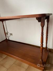 Vendo consolle in legno massello, stile classico, con piano superiore e ripiano inferiore. Struttura robusta, adatta a ingresso o soggiorno. Misure: L 150 – P 61 – H 90 cm. Prezzo trattabile. Ritiro in loco.