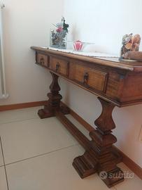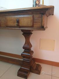 Console realizzata in noce stile '600 con 3 cassetti dimensioni cm 150 per cm 40