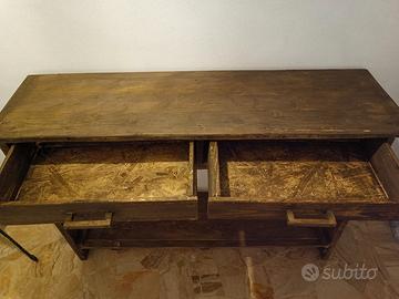 vendo bellissimo mobile in legno massello - legno massello - estremamente robusto - solido - 2 cassetti - stile vintage estremamente versatile misure 35 cm di profondità, 82 cm di altezza e 125 cm di lunghezza per info e consegna a mano contattatemi in privato