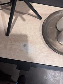 Piccola console per ingresso, marca Maison du Monde. Misure altezza 71 cm , profondità 30 cm, 99 cm lunghezza. 2 ripiani e due piccoli cassetti. Ha un piccolo difetto come si vede in foto che io compro con una candela 😅