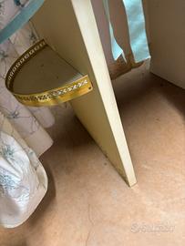 Console in ottiime condizioni con specchio e tendine. Misure profondita’ 61, altezza tavolo 76, altezza specchio 54, larghezza 110. Ririro di persona a pietracuta di san leo.