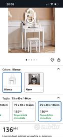 Vendo elegante console per truccarsi in stile shabby chic, completa di sgabello coordinato con seduta floreale.