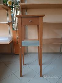 Mobiletto console in legno di faggio tinta ciliegio. Misure 34X34X90h. Un ripiano in vetro smeriglio e un cassetto.