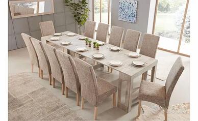 Vendo tavolo consolle Handy conforama colore grigio chiaro cemento. Dimensioni da chiusa: h. 77 cm, profondità 52 cm , lunghezza: 90 cm estensibile con 5 comode allunghe a 3 m. Nuova , mai usata , in perfette condizioni. Ideale per chi ha problemi di spazio e all'occorrenza possa disporre di un tavolo più grande. Si integra perfettamente in qualsiasi salotto, open space o zona living e si trasforma in tavolo che ospita fino a 12 persone.
