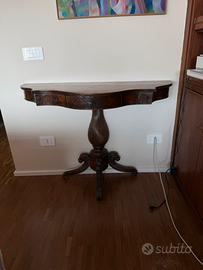 Presenta una colonna centrale lavorata e gambe curve tipiche dell'epoca.