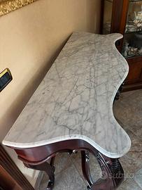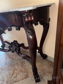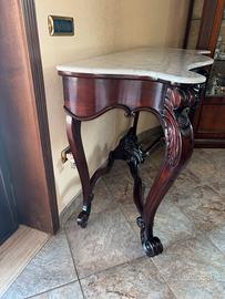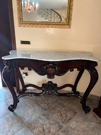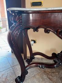 Consolle antica in legno intagliato con marmo.
