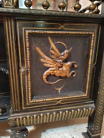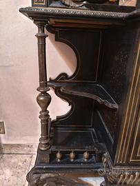 Il mobile si trova in buone condizioni generali viste le immagini, con i normali segni del tempo che ne testimoniano l'autenticità. Un pezzo raro per amanti dello stile gotico, neorinascimentale o eclettico.