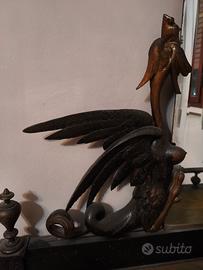 Fregi e decorazioni: Presenta un pannello centrale con una chimera/dragone in rilievo dorato e una scultura superiore a forma di drago alato.