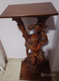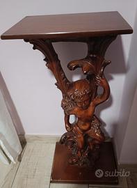Una deliziosa Consolle antica, Stile Barocco Anni 100 circa, con la sua elegante finitura, l'adorabile motivo a forma di angelo e grazie alle sue dimensioni ridotte, pari a 73 cm di altezza, base inferiore larghezza 35 cm e profondità 25 cm, base superiore larghezza 31 cm e profondità 22 cm, si adatta a diversi spazi, tra cui ingressi, corridoi, soggiorni e/o Sale. Ideale come portafiori o come consolle, il Tavolo Angel-Putto, coniuga eleganza e signorilità, creando un angolo speciale ed è ottimo per chi ama gli interni e gli abbinamenti in stile principesco.
