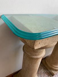 Consolle composta da due colonne in pietra alleggerita con cristallo 20 mm 3g Molto bella. Oggetto eccezionale come nuovo. Svendo 250 euro Nemmeno il costo del cristallo