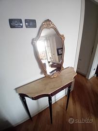 Consolle con specchiera anni 60 piano in marmo. Specchio 80x50. Consolle lungh. Cm 105 . Prof cm 30 . H cm 88. Ottime condizioni. Prezzo trattabile