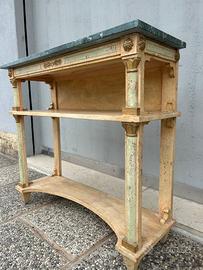 Mobile consolle laccata con ripiano in marmo stile impero. Perfetta, vetro diamantato. 97x34h202cm
