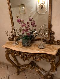 Consolle con specchio colore oro con intarsi a conchiglia senza marmo prezzo350